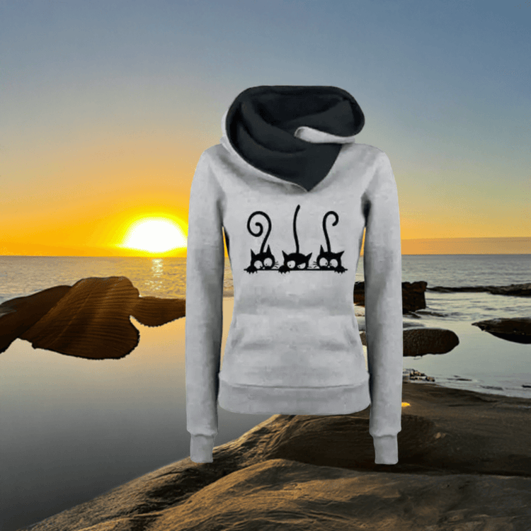 Fleece Lined Hoodie Womens: Cozy Cat Charm Awaits!